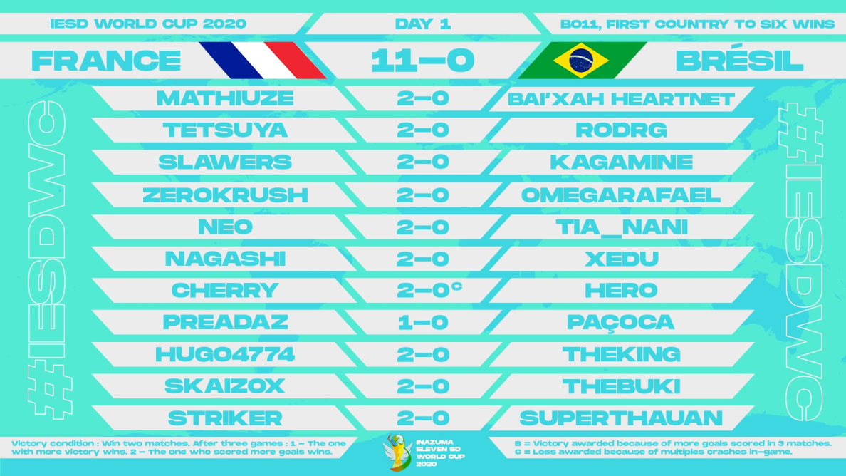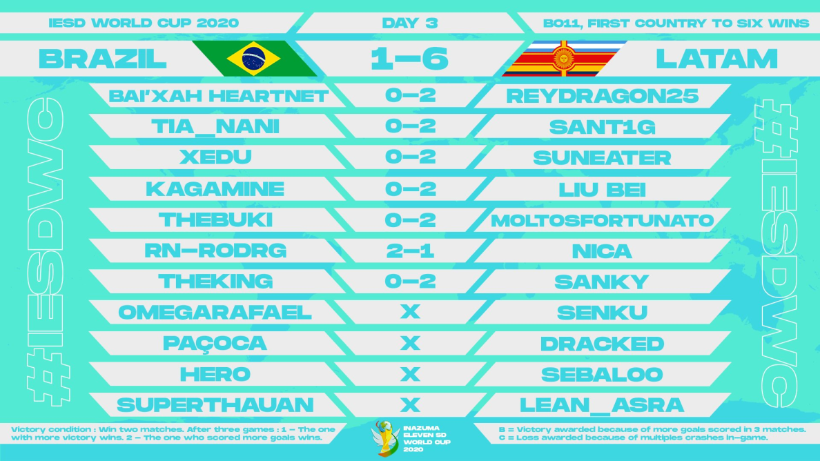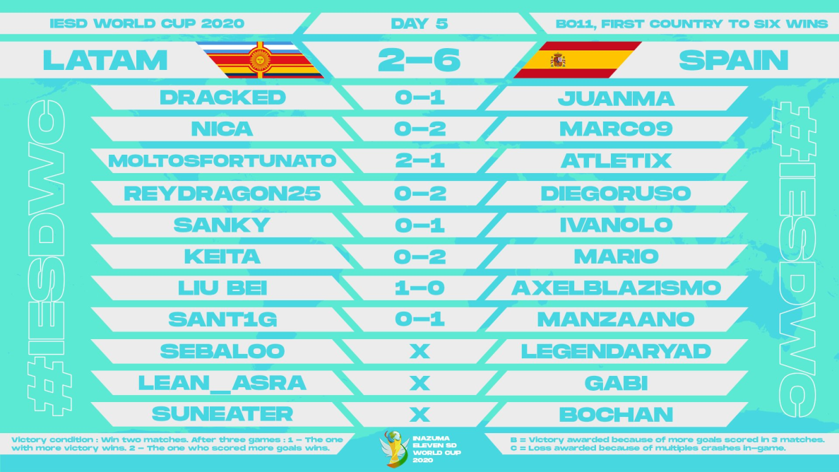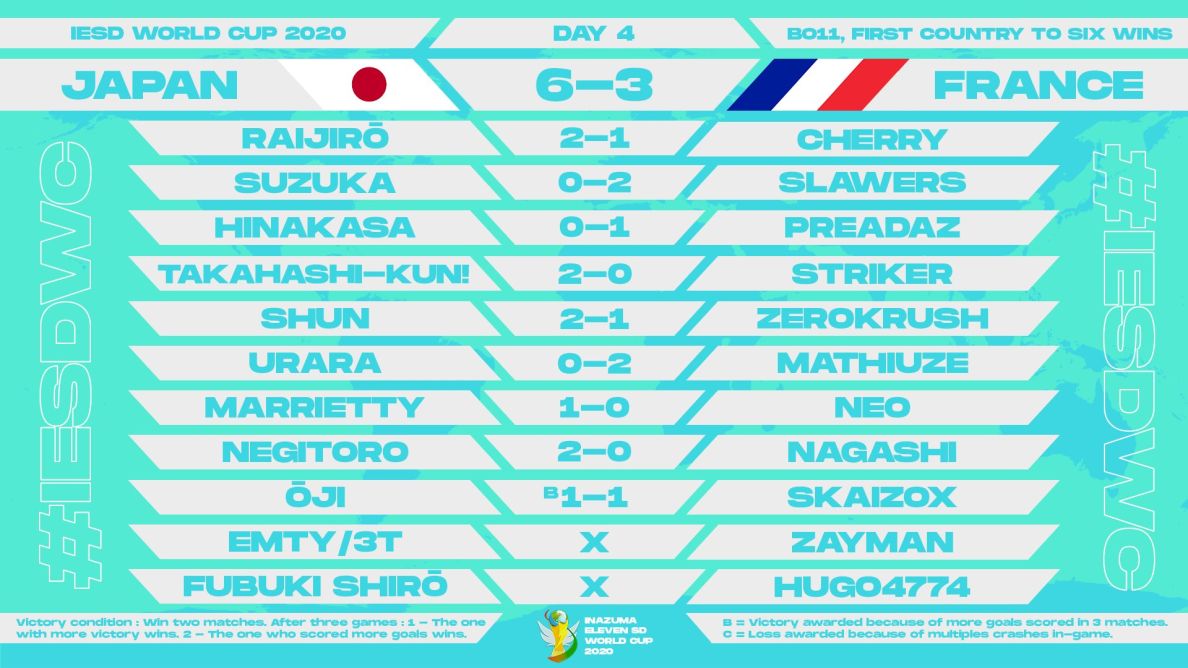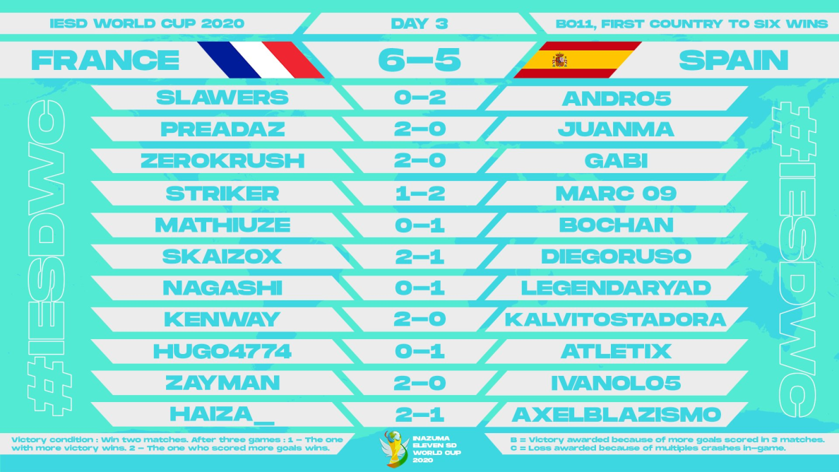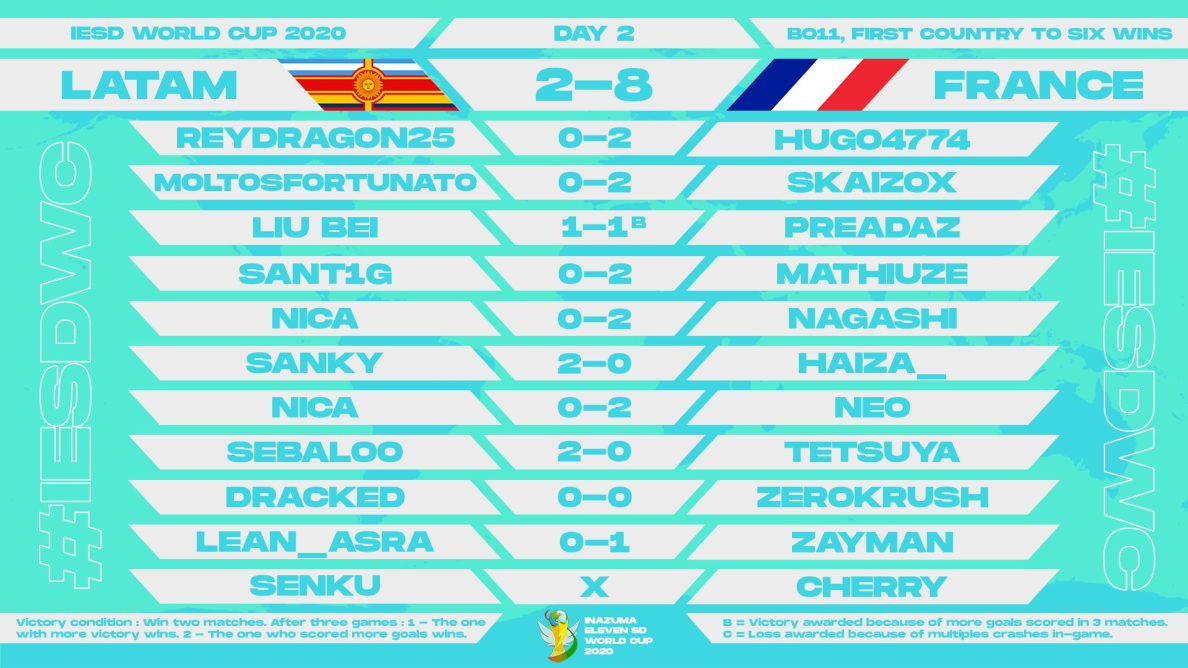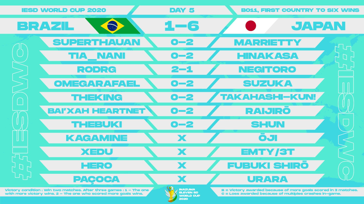 The Inazuma Eleven SD World Cup was organised in August 2020 by Juanma10. It was the first World Cup to be organised in the community. It consisted of 5 countries of more than 10 players per teams, all within one single group and the 4 first of the group would progress to the final stage. It was won by Japan, with behind them Spain, France and South America.